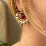 Spanish fan earring gold plated in 18k with pearls and red jade