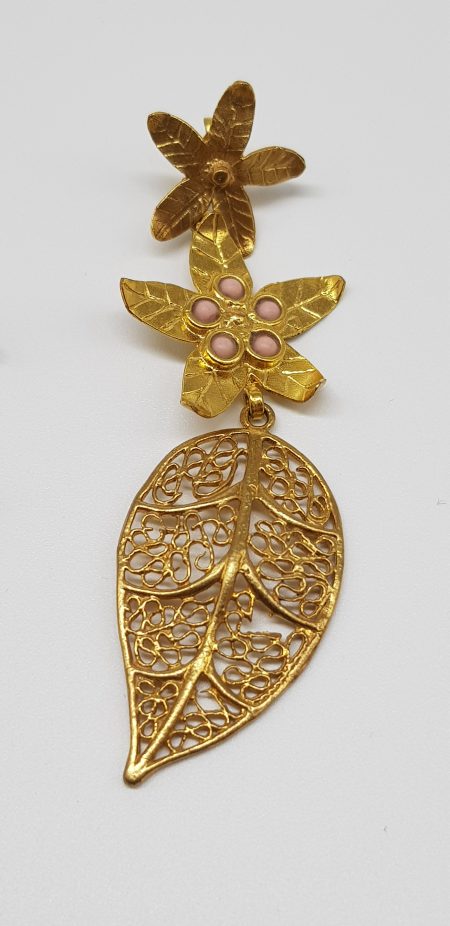 Earring gold plated in 18k with natural pink stones.