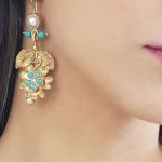 Flower earring with turquoises and pearls gold plated in 18k gold