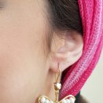 Earring gold plated in 18k with natural garnet, turquose, pearl.