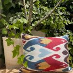 Our Ikat cover cushions in silk and cotton fabric are woven on old wooden Loom by the women of Uzbekistan.