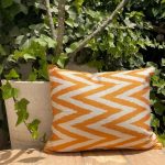 Our Ikat cover cushions in silk and cotton fabric are woven on old wooden Loom by the women of Uzbekistan.